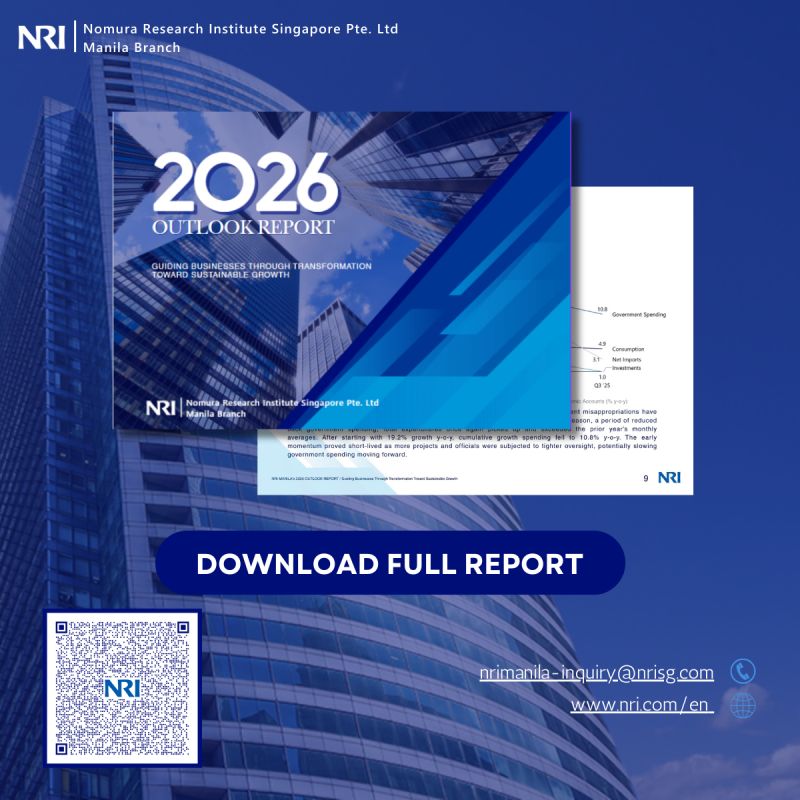 The 2026 𝐍𝐑𝐈 𝐌𝐚𝐧𝐢𝐥𝐚 𝐎𝐮𝐭𝐥𝐨𝐨𝐤 𝐑𝐞𝐩𝐨𝐫𝐭 is now live—bringing together forward-looking perspectives from NRI experts across industries to help leaders navigate what lies ahead for the Philippines. As the country enters 2026, the economy stands at a critical juncture. Growth softened in 2025 amid global headwinds and domestic challenges, even (more…)