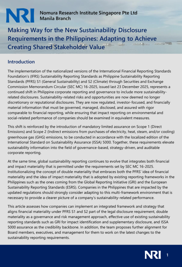 Read MoreMaking Way for the New Sustainability Disclosure Requirements in the Philippines: Adapting to Achieve Creating Shared Stakeholder Value